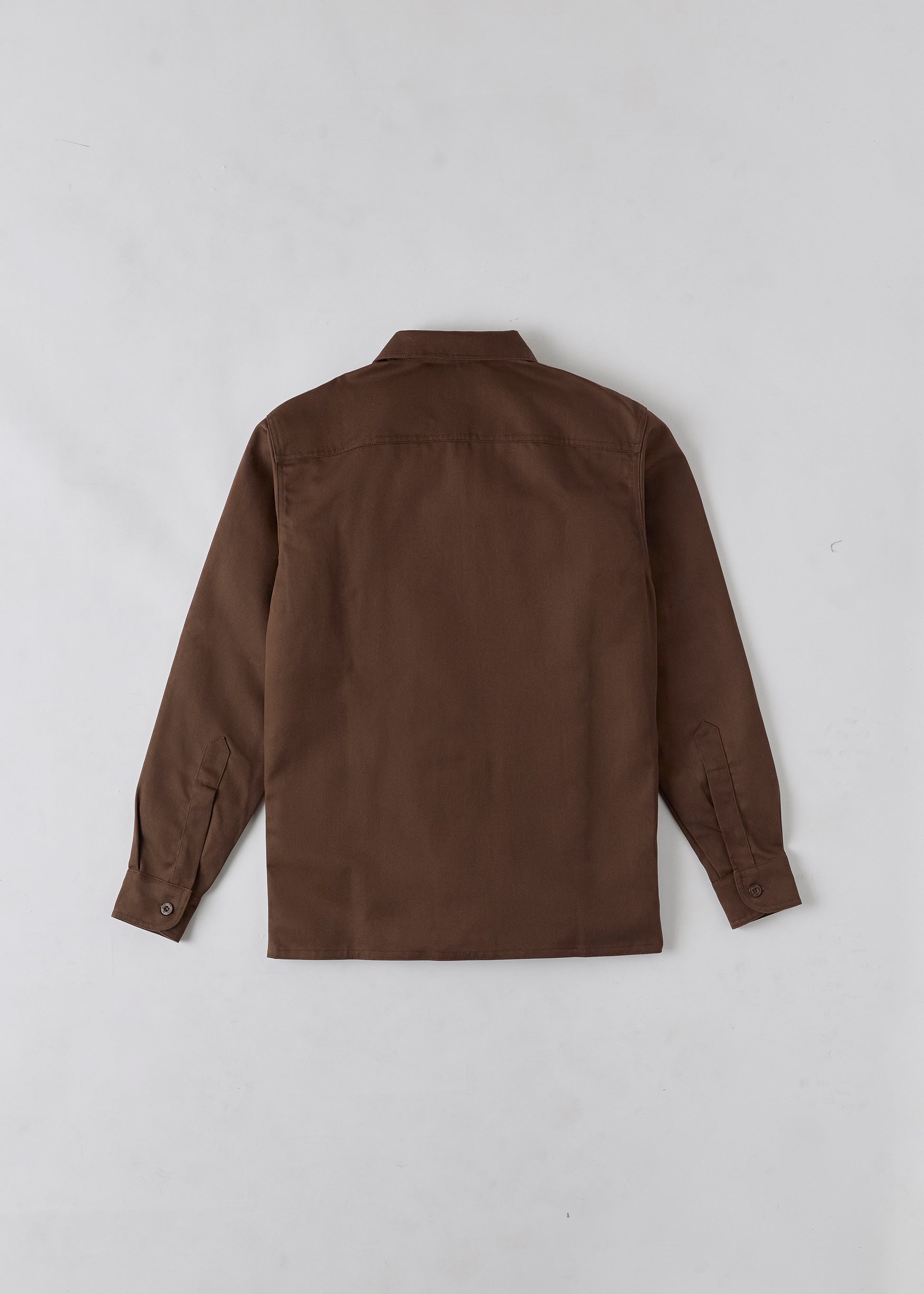 Available in 7.5 oz twill, 35/65 polyester cotton blend or 10 oz hickory stripe, 100% cotton. Double needle topstitch. Branded resin buttons on front. Two chest pockets. Back yoke detail. Sleeve cuff with branded resin button. Machine wash cold / tumble dry low.