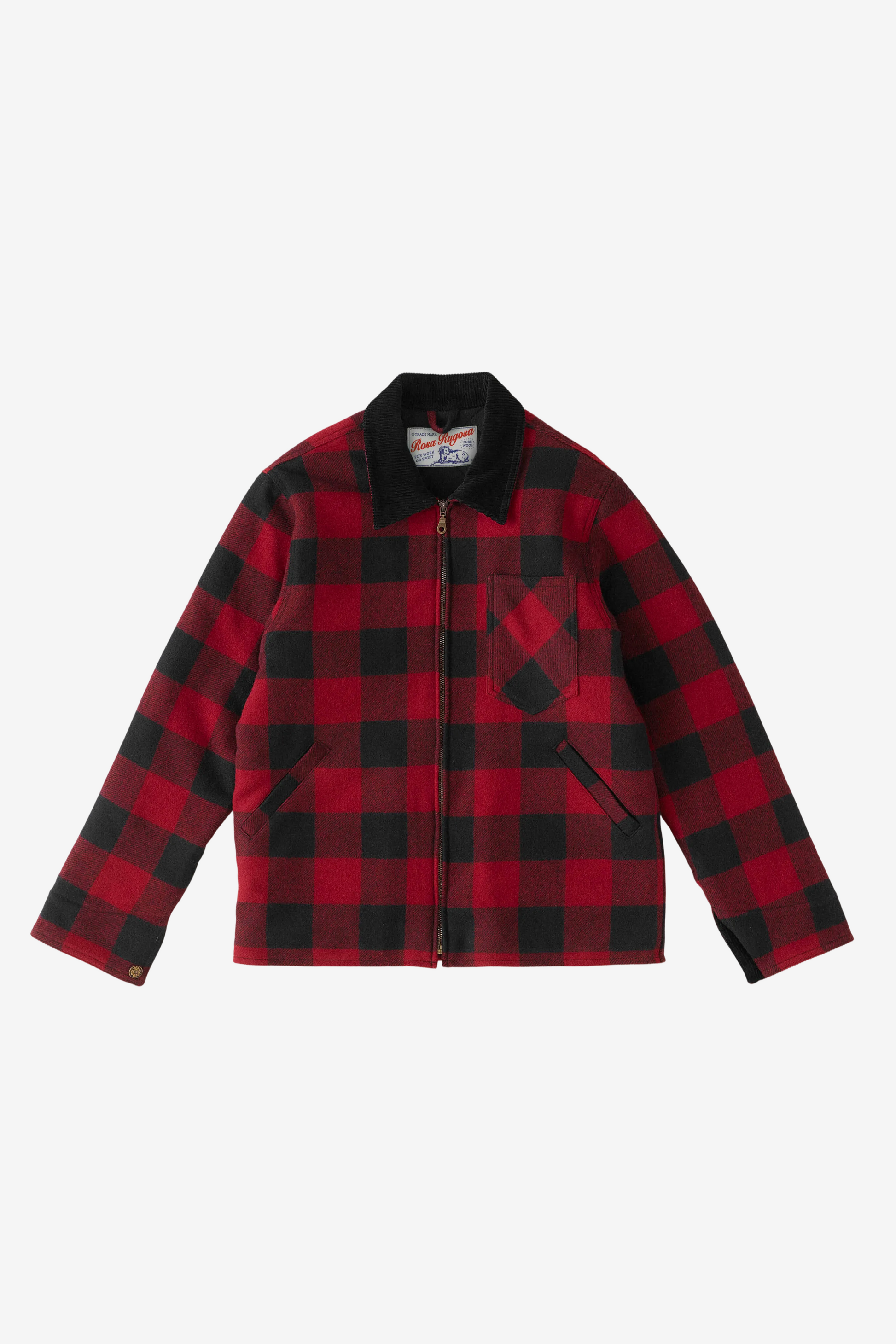 Cut from 100% wool in a traditional buffalo check. This garment features interior corduroy collar and cuffs. Fully lined with quilted, brushed cotton for comfort and insulation. Double needle top stitching along sleeves and shoulders for reinforced durability. Antique brass donut pull zipper and embossed metal rose buttons. Two Single welt hand pockets, a bias cut chest pocket and an interior pocket.